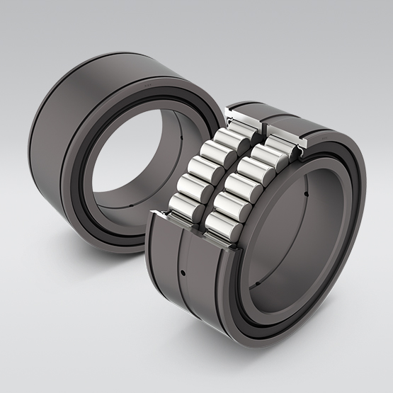 Os rolamentos de rolos cilíndricos de duas carreiras apresentam alta rigidez radial e são usados principalmente em eixos principais de máquinas-ferramentas de precisão. As gaiolas são normalmente feitas de aço prensado ou latão usinado, mas alguns modelos utilizam gaiolas de resina de poliamida moldada.