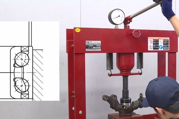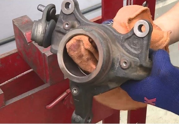 - Presione el rodamiento para separarlo de la mangueta de dirección.